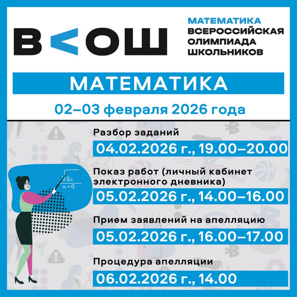 2 и 3 февраля в Центре профмастерства ВИРО пройдет региональный этап всероссийской олимпиады школьников по МАТЕМАТИКЕ (ул. Набережная 6-й Армии,199а).
